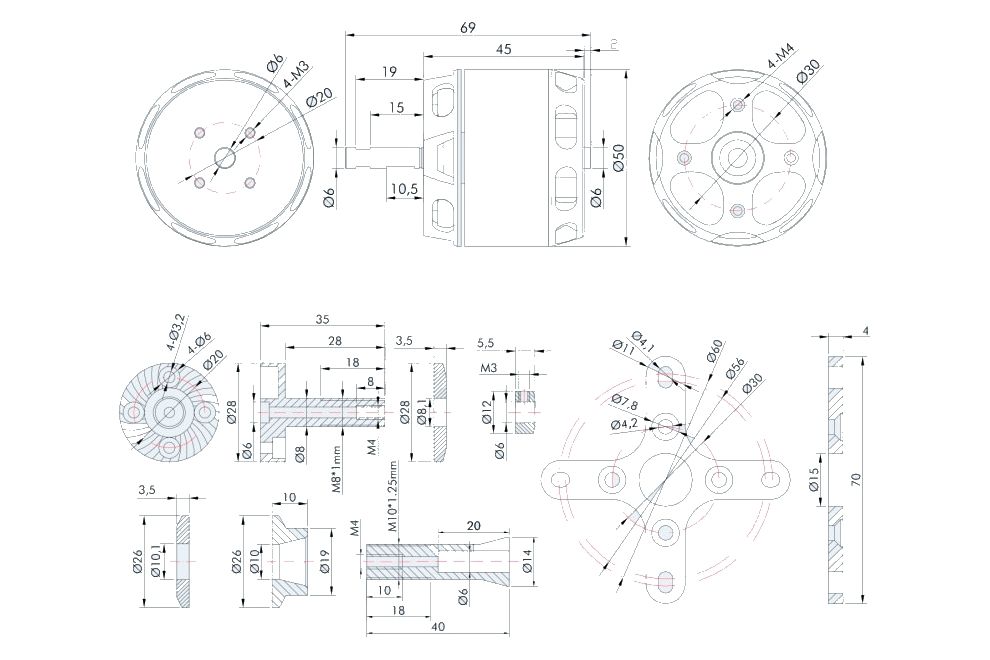 Мотор T-Motor AT4120 KV500 1700W 75A 6S для літаків