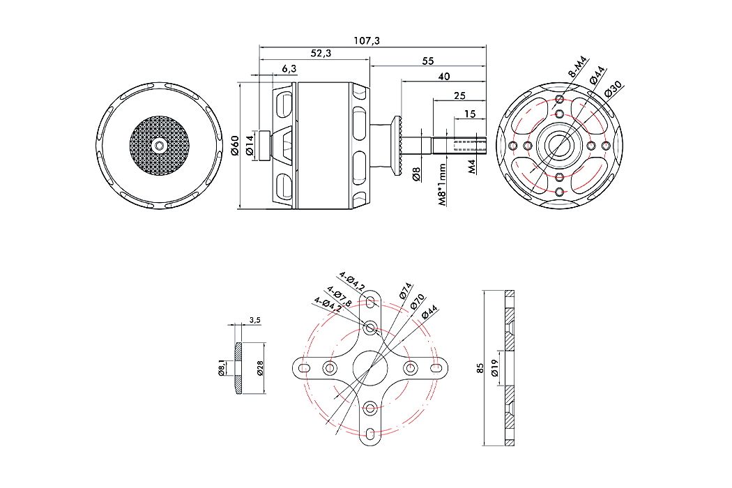 Мотор T-Motor AT5220A KV380 2200W 6S для самолетов 20-25CC