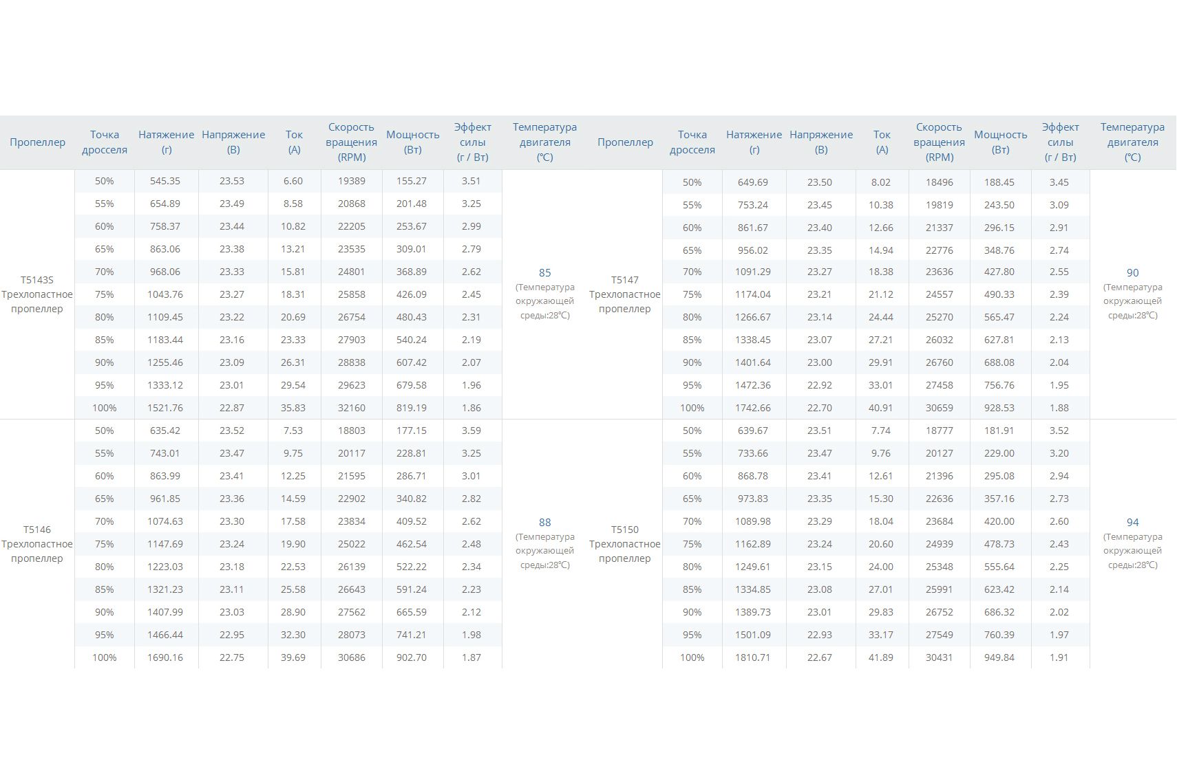 - Рекомендовані пропелери: T5143S; T5146; T5147; T5150
