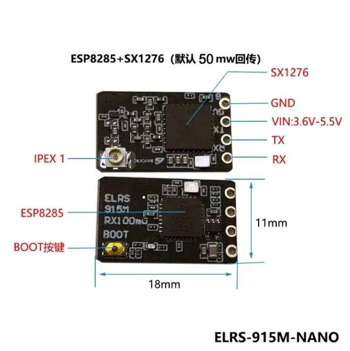 - Компактний розмір і легка вага: З вагою лише 0.6 г без антени, приймач має надзвичайно компактні розміри (11мм * 18мм), що дозволяє легко інтегрувати його в будь-які дрон-системи.