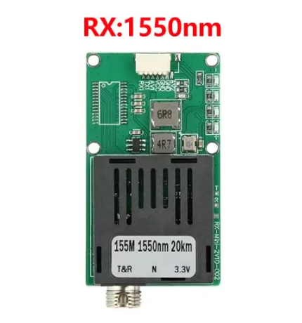 RX 1550nm — це оптоволоконний приймальний модуль, який приймає 1-канальний відеосигнал та UART/TTL/SBUS дані на відстані до 20 км через одномодове оптоволокно.