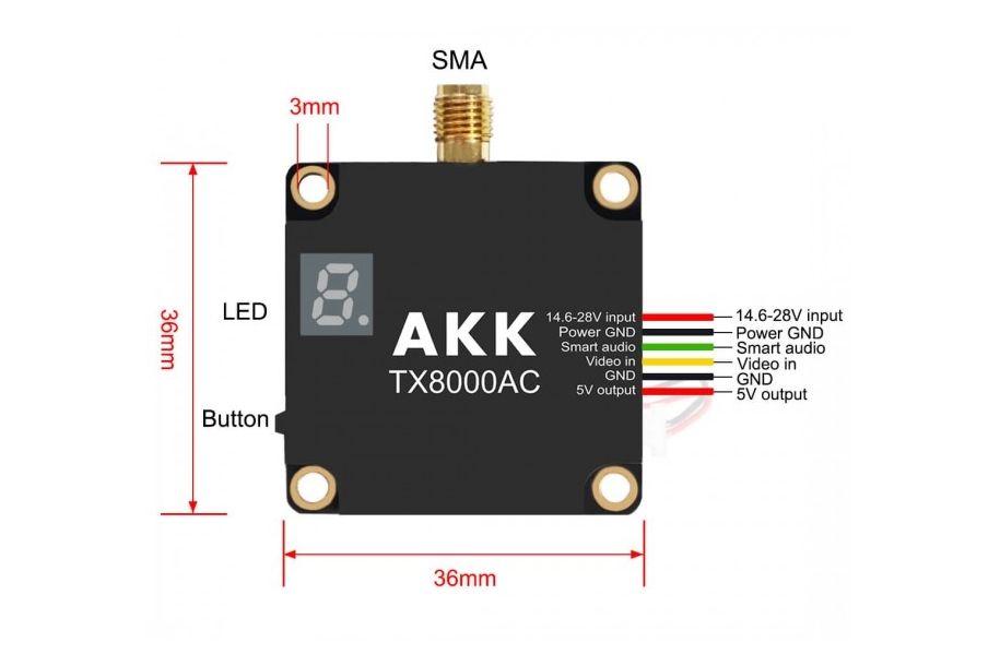 - Рекомендовано використовувати цей VTX з трубковою антеною AKK або алмазною антеною