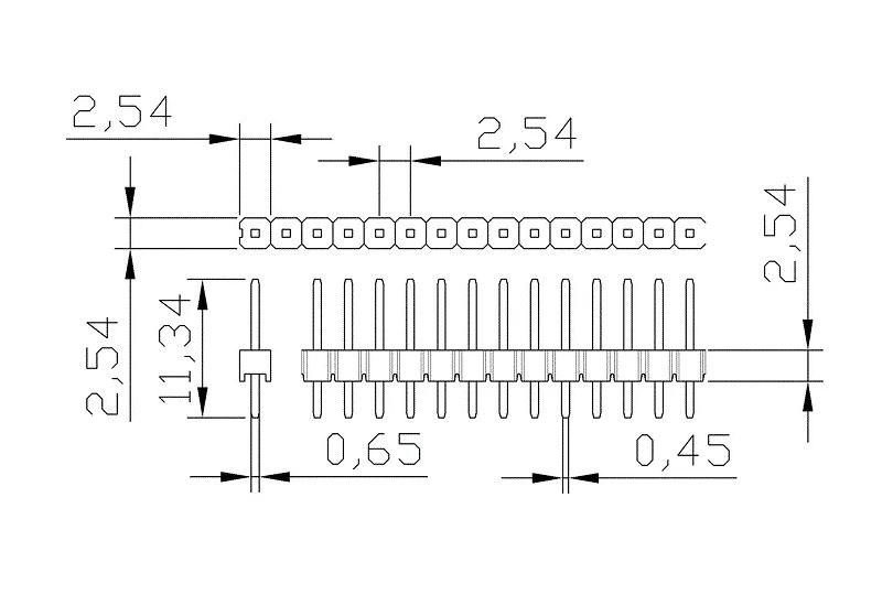 - Вилка пряма PLS 1x40 2.54 мм гребінка мідна (чорний) - 100 шт.