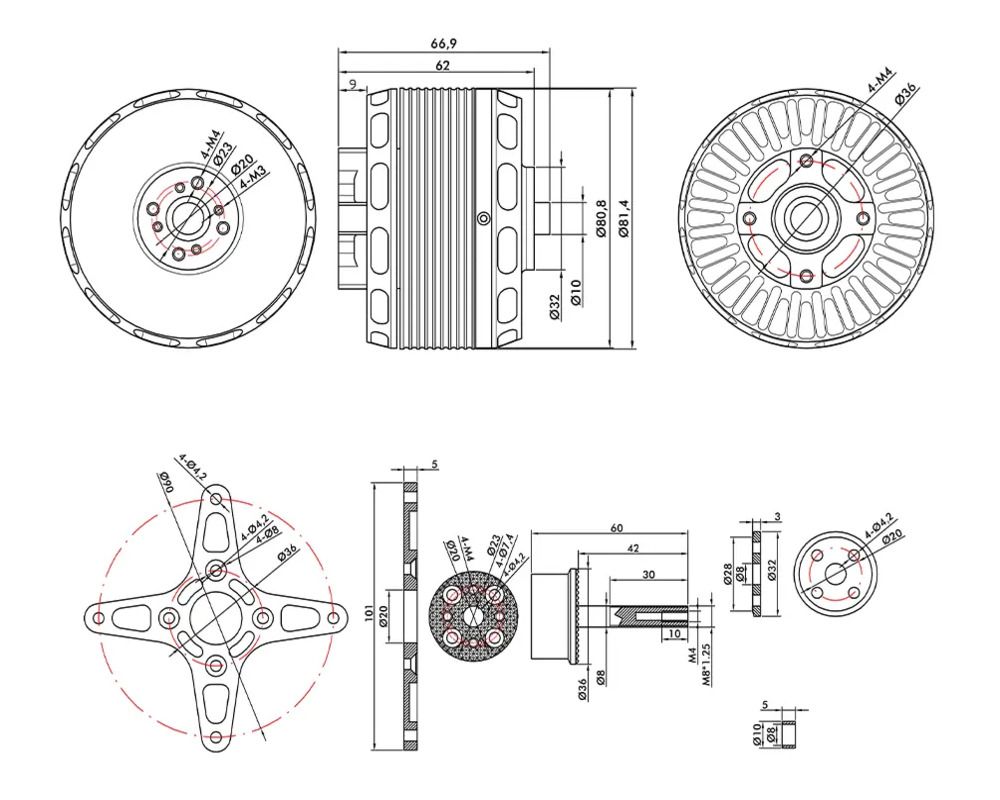 - Гнучкість монтажу: підходить як для літаків, так і для мультикоптерів – завдяки знімному адаптеру гвинта.