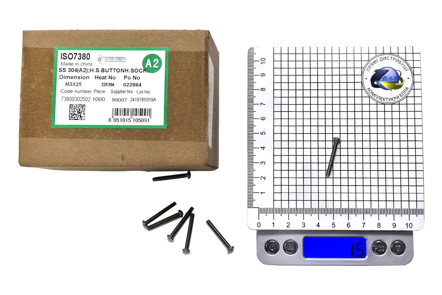 Гвинт сталевий M3x25мм A2 / ISO 7380