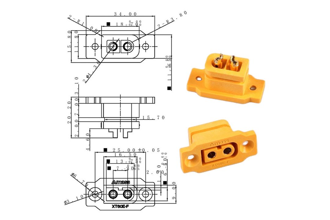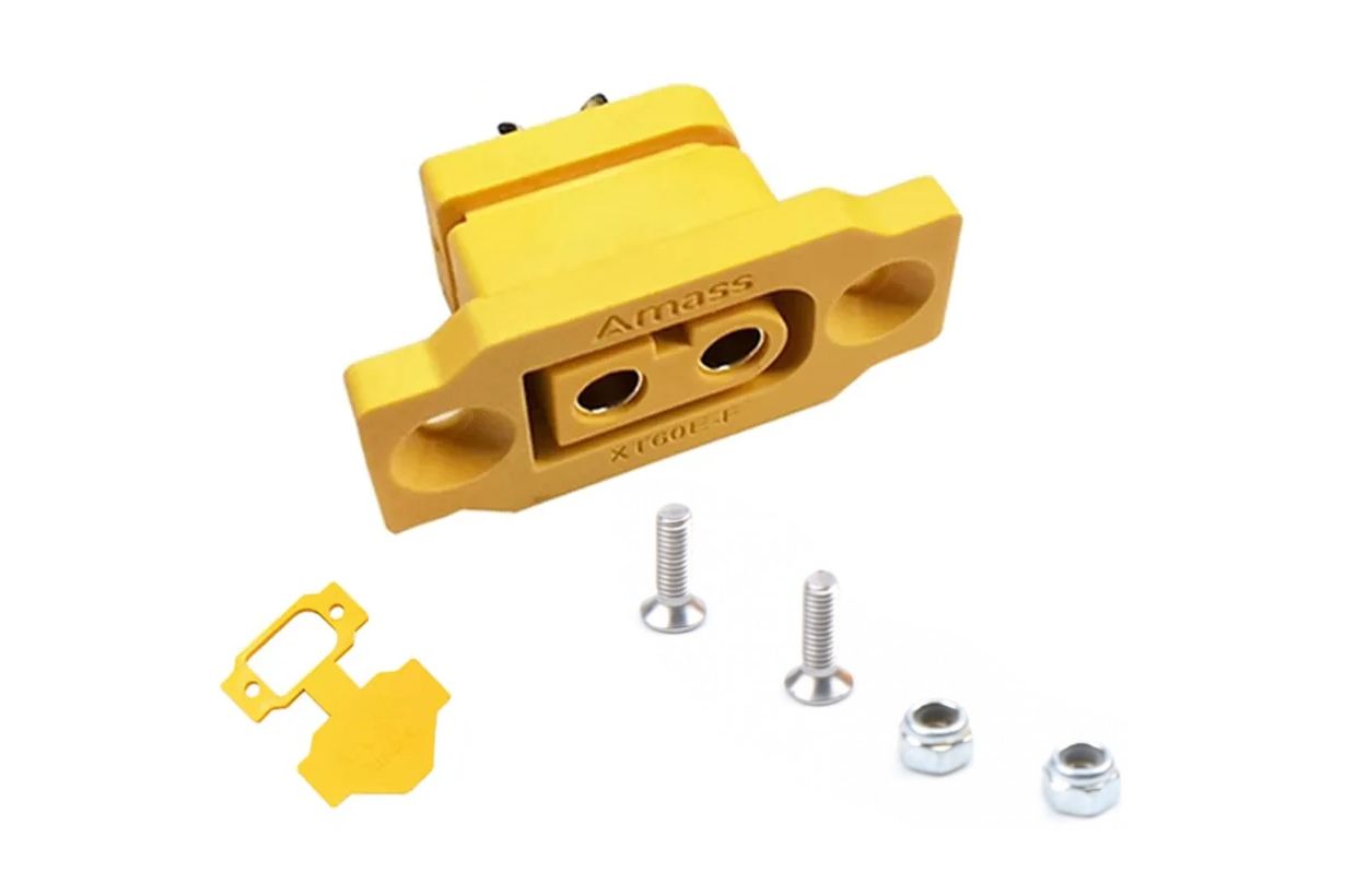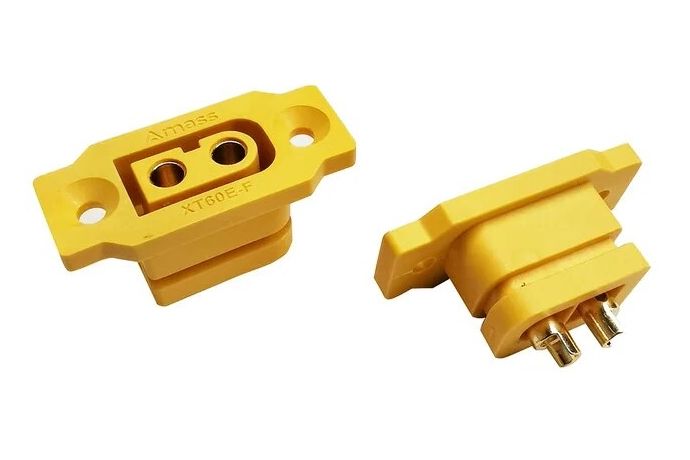 Разъем AMASS XT60E-F может применяться для надежного соединения высокотоковых цепей с рабочим током до 60А. Разъем давно и успешно применяется в моделизме, электротранспорте. Данная версия разъема имеет крепления под винты с гайкой, при этом полностью совместима с обычными AMASS XT60. Винты поставляются в комплекте с разьемом.