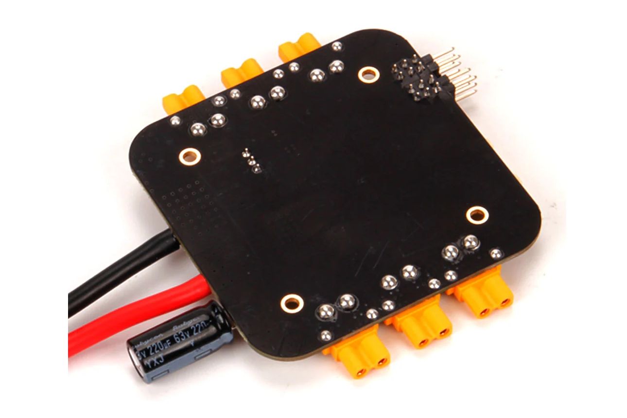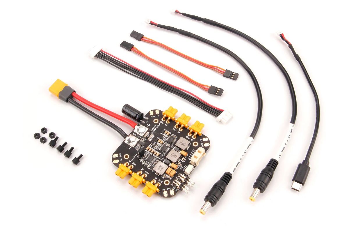 Він розроблений для мультироторів, таких як X500 V2. Він має попередньо встановлені роз'єми XT-30 та XT-60 для керування двигуном ESC та акумулятора, а також два 5V BEC та вибірковий вихід 8V/12V для різних видів периферійних пристроїв.