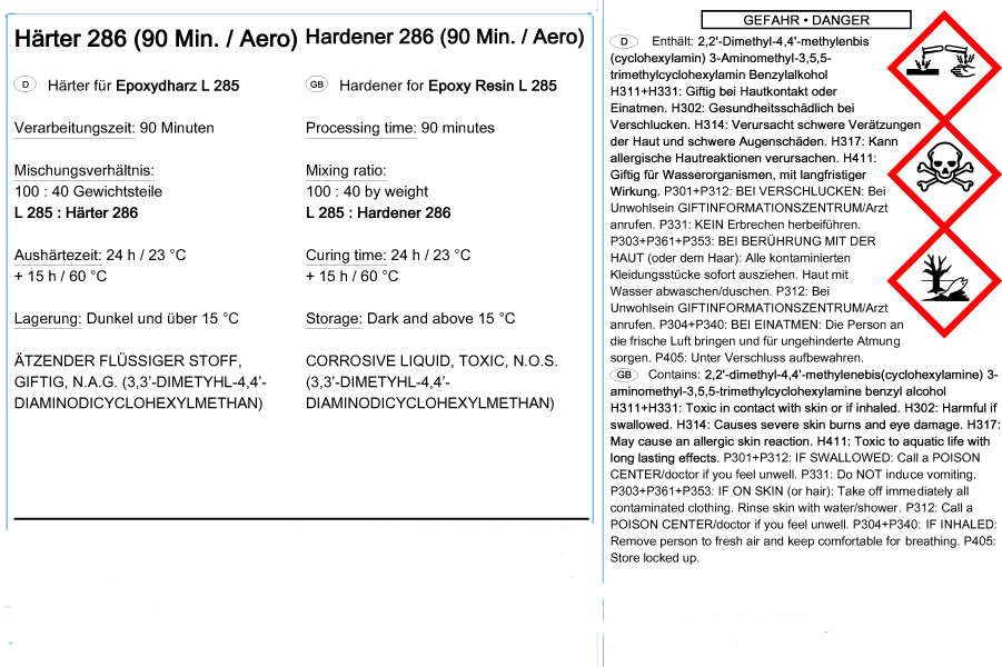 Система (смола LR 285 + затверджувач LH-286) має дуже хорошу фізіологічну сумісність і є однією з найбільш використовуваних в авіаційній промисловості.