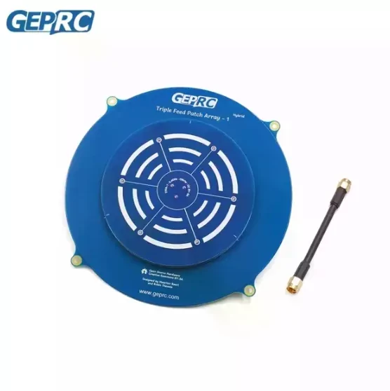 Антена Patch Array Triple Feed - це спрямована антена з двома виходами, які мають праву та ліву поляризацію LHCP і RHCP, заснована на оригінальній потрійній антені. Вона складається з серії семи комбінованих патчів. Через вузьку ширину променя ця антена не підходить для стандартних FPV, але чудово справляється з польотами на великі відстані.