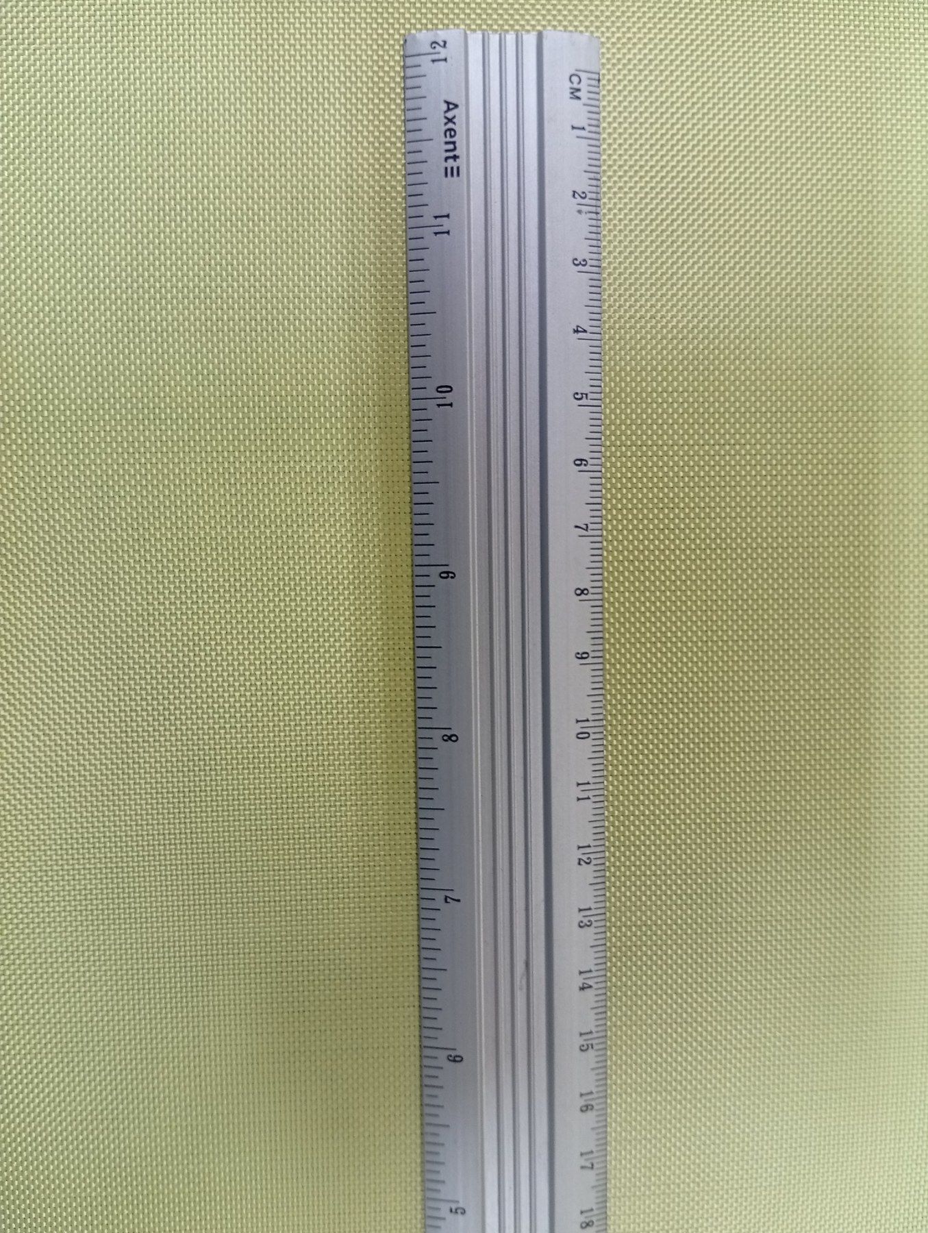 - Щільність: 110 г/м² – це відносно низька щільність для арамідних тканин, що робить її легкою.