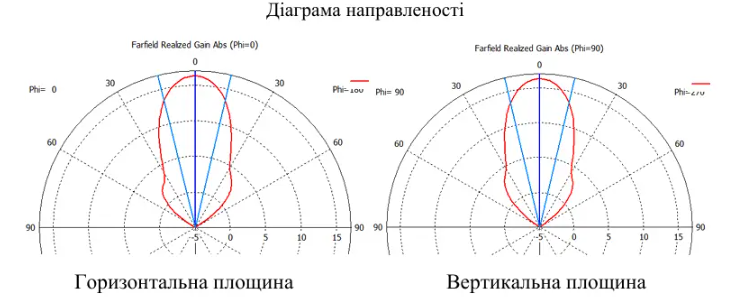 по вертикалі — 25° - КСВ (VSWR): < 1.3