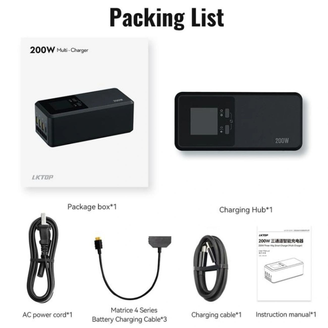 Модель UC342 відзначається максимальною вихідною потужністю 200 Вт, що дозволяє одночасно заряджати до трьох акумуляторів Autel Evo Max 4T без втрати ефективності. Завдяки інтелектуальному розподілу потужності пристрій забезпечує стабільний струм для кожного каналу, адаптуючись до рівня заряду кожної батареї.