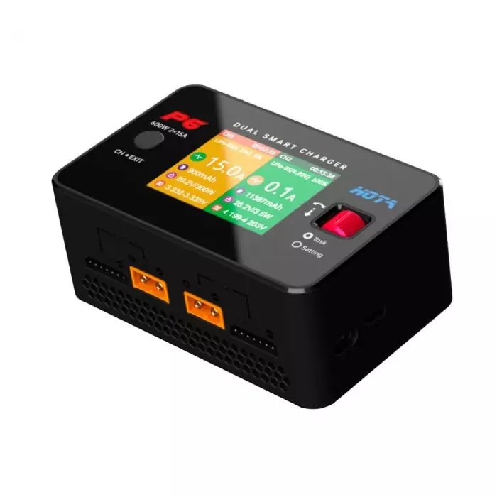 Модель HOTA P6 — це інтелектуальний двоканальний зарядний пристрій, який призначений для професійного використання в FPV-спільноті, а також серед моделістів, які шукають надійність, потужність і гнучкість. Потужність 600 Вт, підтримка батарей до 6S, два незалежні канали та вдосконалений інтерфейс управління роблять цю модель одним із найкращих рішень у своєму класі.
