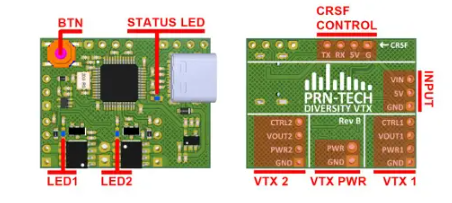 Diversity VTX Adapter — це інтелектуальний модуль для FPV-дронів, який дозволяє встановити два відеопередавачі (VTX), керувати їх живленням, каналами та потужністю через протоколи SmartAudio або Tramp.