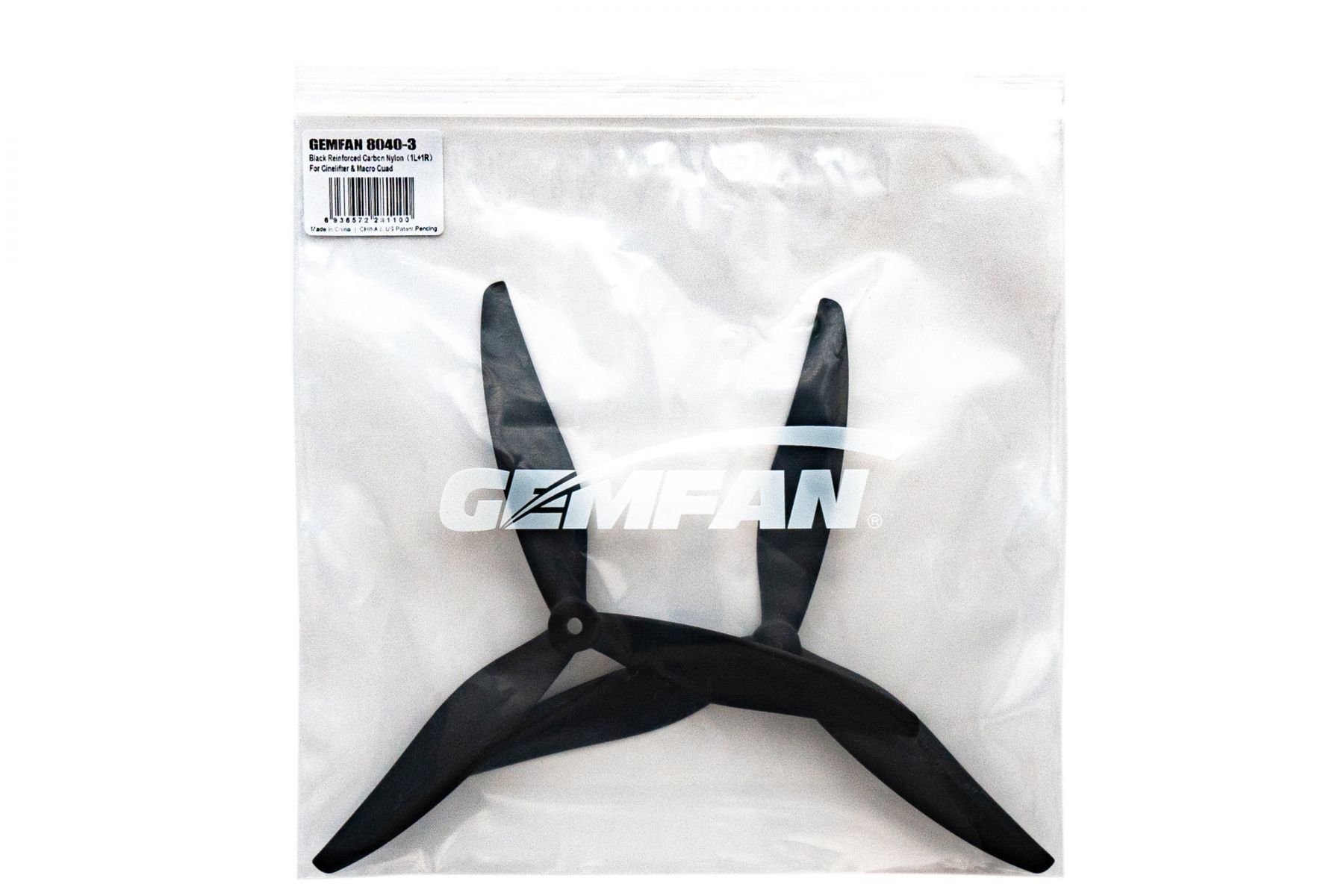 Пропелери нейлон GemFan 8040-3 армовані карбоном 1CW+1CCW (чорний)