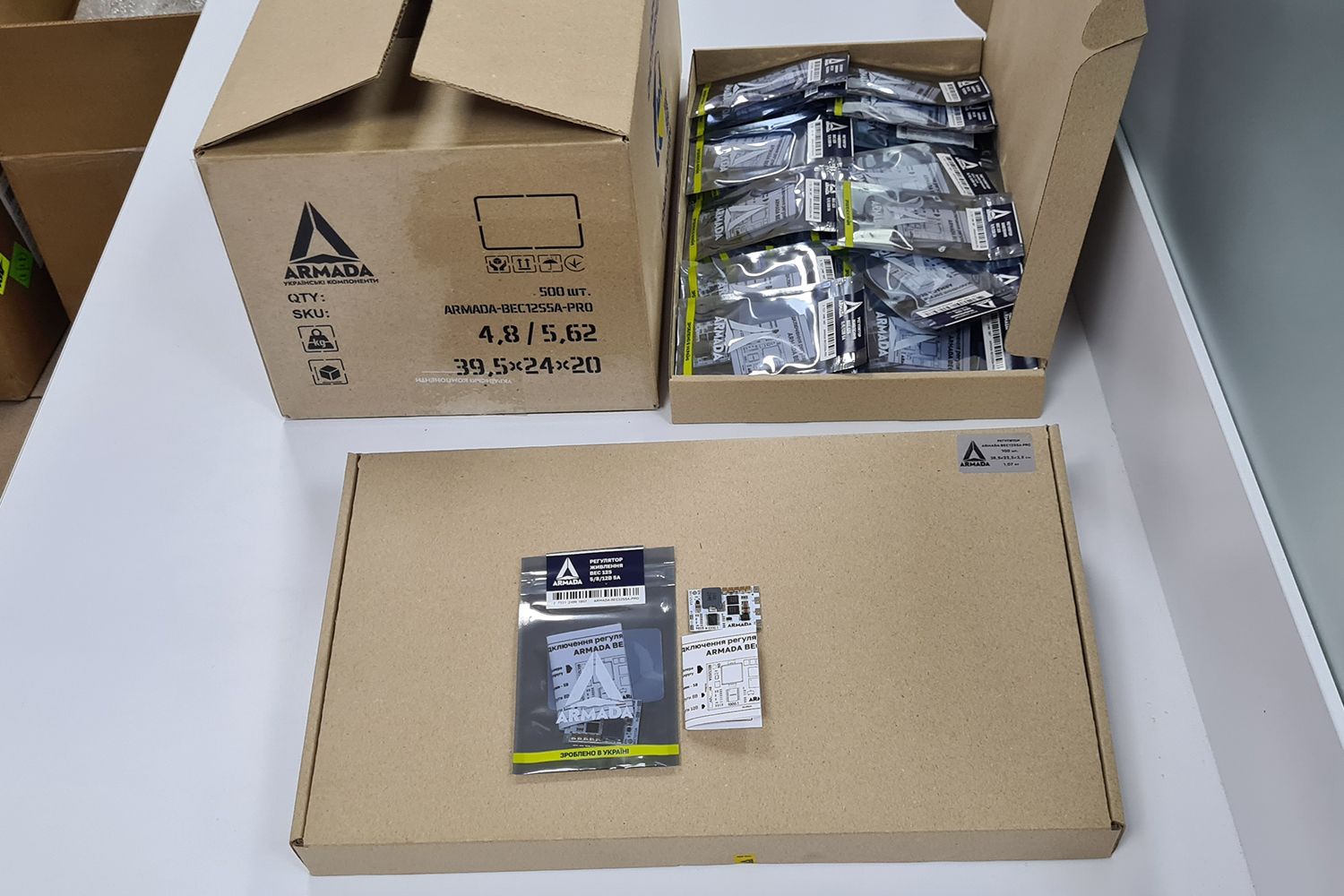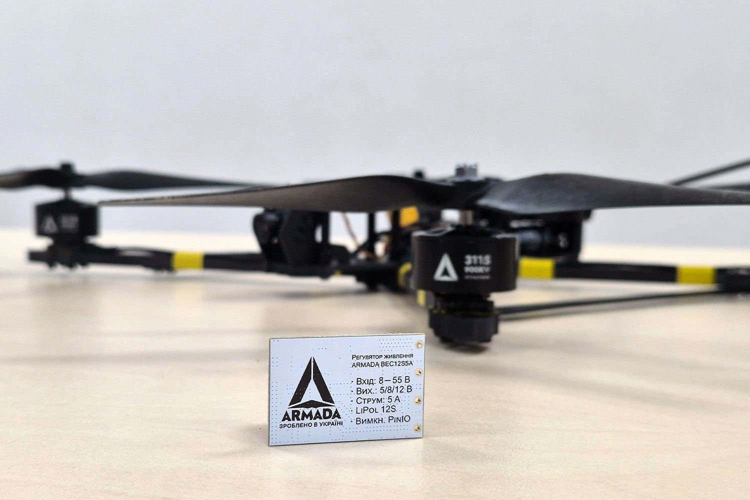 ARMADA BEC 12S - надійний регулятор напруги українського виробництва, створений для стабільного живлення бортової електоніки: контролера, приймача, відеопередавача, камери, сервоприводів, датчиків навігації, телемітрії та інших компонентів БПЛА. BEC забезпечує чисту та стабільну вихідну напругу для живлення електроніки дрона при широкому діапазоні входу – від 6 до 55 В. Боротові регулятори Армада ставлять як на невеликі FPV дрони, так і на вантажні квадрокоптери або на великі моделі літаків, НРК. BEC ARMADA адаптований під українські умови виробництва БПЛА, логістики та сервісу.