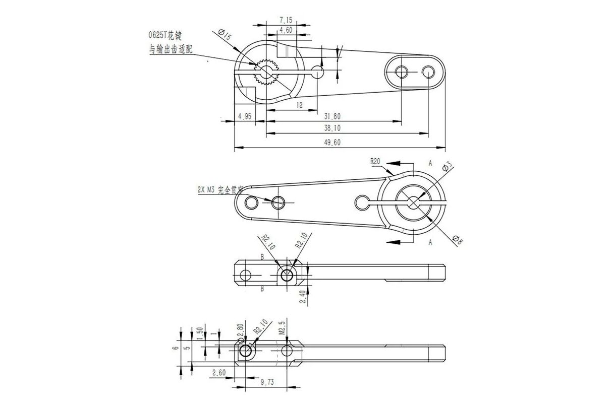 Важіль сервоприводу KST 0625.38 25T-6 31.8-38.1 M3 алюмінієвий