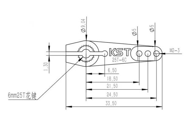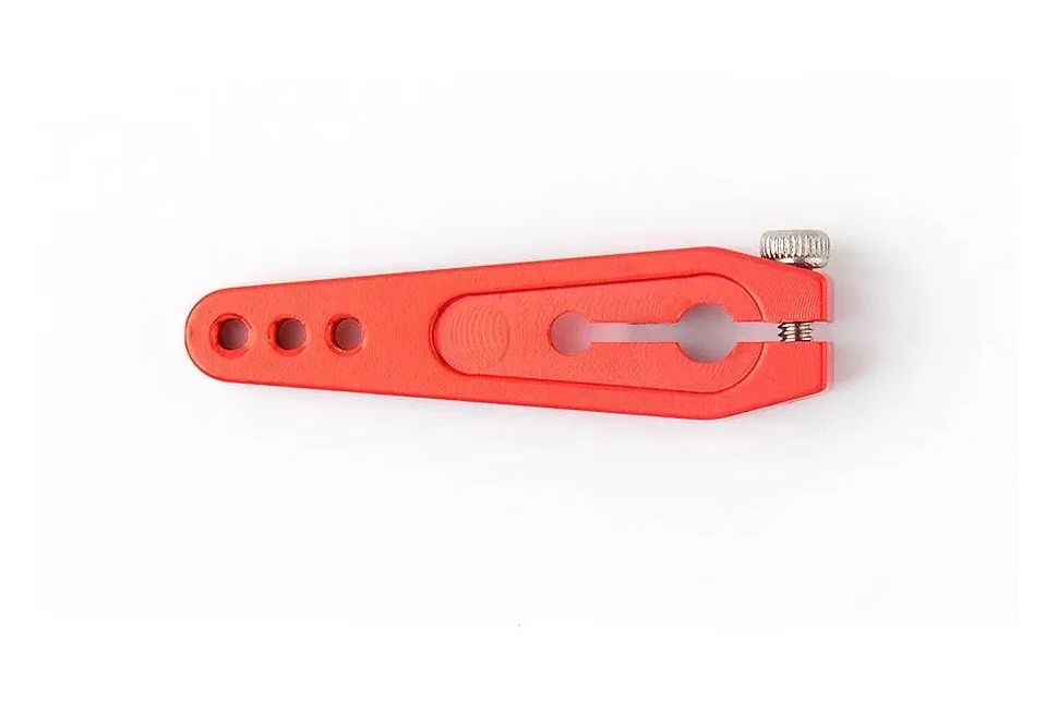 Містить лише один міцний металевий вихідний важіль. Відстань від осі вихідного валу сервоприводу до отворів становить від 18,5 мм до 24,5 мм. Отвори мають різьблення для гвинтів M2.